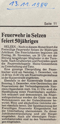 ² Vgl. Hubert Geil, „Freiwillige Feuerwehr Selzen“ in „Jubiläumsbuch zur 1200-Jahrfeier der Weinbaugemeinde Selzen“, 1982, Seite 133 bis138.
